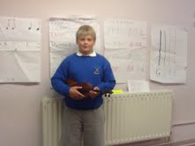Today we practiced holding our violins in rest and play positions . We played pizzicato on G and D . Ms Loftus and her class moved on to A . We played short and long notes for Twinkle Twinkle . Can you remember what words had long notes .